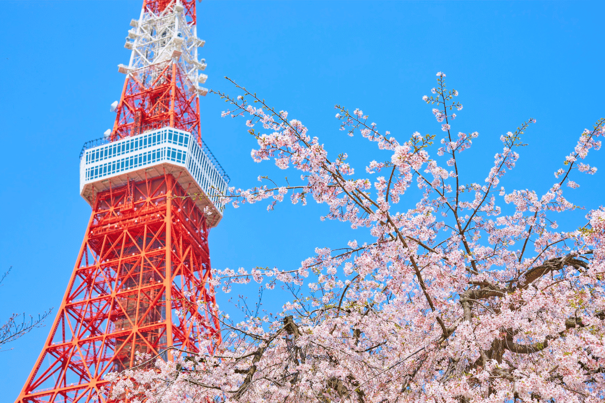 東京といえばやっぱり東京タワー。青空の下ではオレンジ色が映え、夜はライトアップがとても華やかです。 おすすめの撮影場所は増上寺や芝公園。お寺の屋根越しにタワーを入れると、「和とモダン」が融合した印象的な一枚になります。