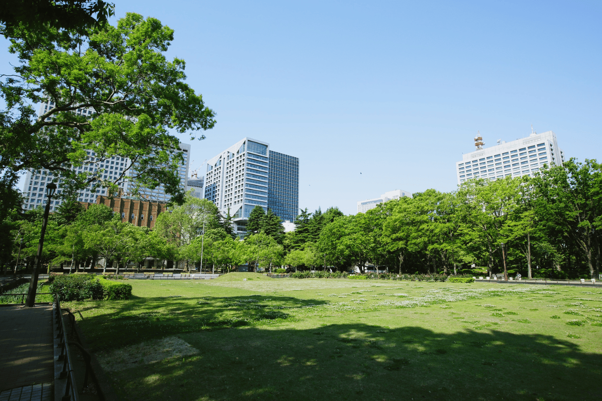 東京ミッドタウン日比谷の6階にある「パークビューガーデン」からは、日比谷公園と皇居外苑が一望できます。 都会のビル群と緑が重なる構図は、まさに東京ならでは。